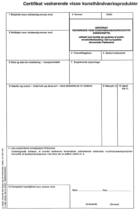 Bilag 27 Certifikat vedrørende visse kunsthåndværksprodukter