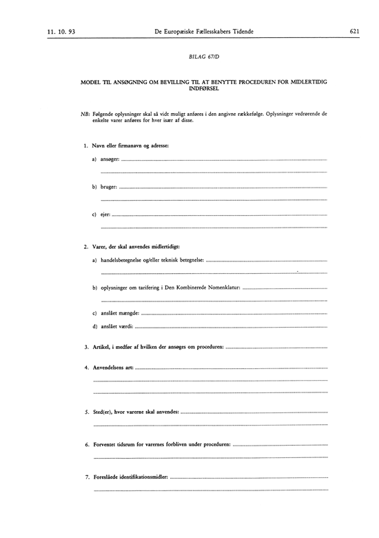 Toldvejledning; Blanketter, bilag mv. - 2012-2