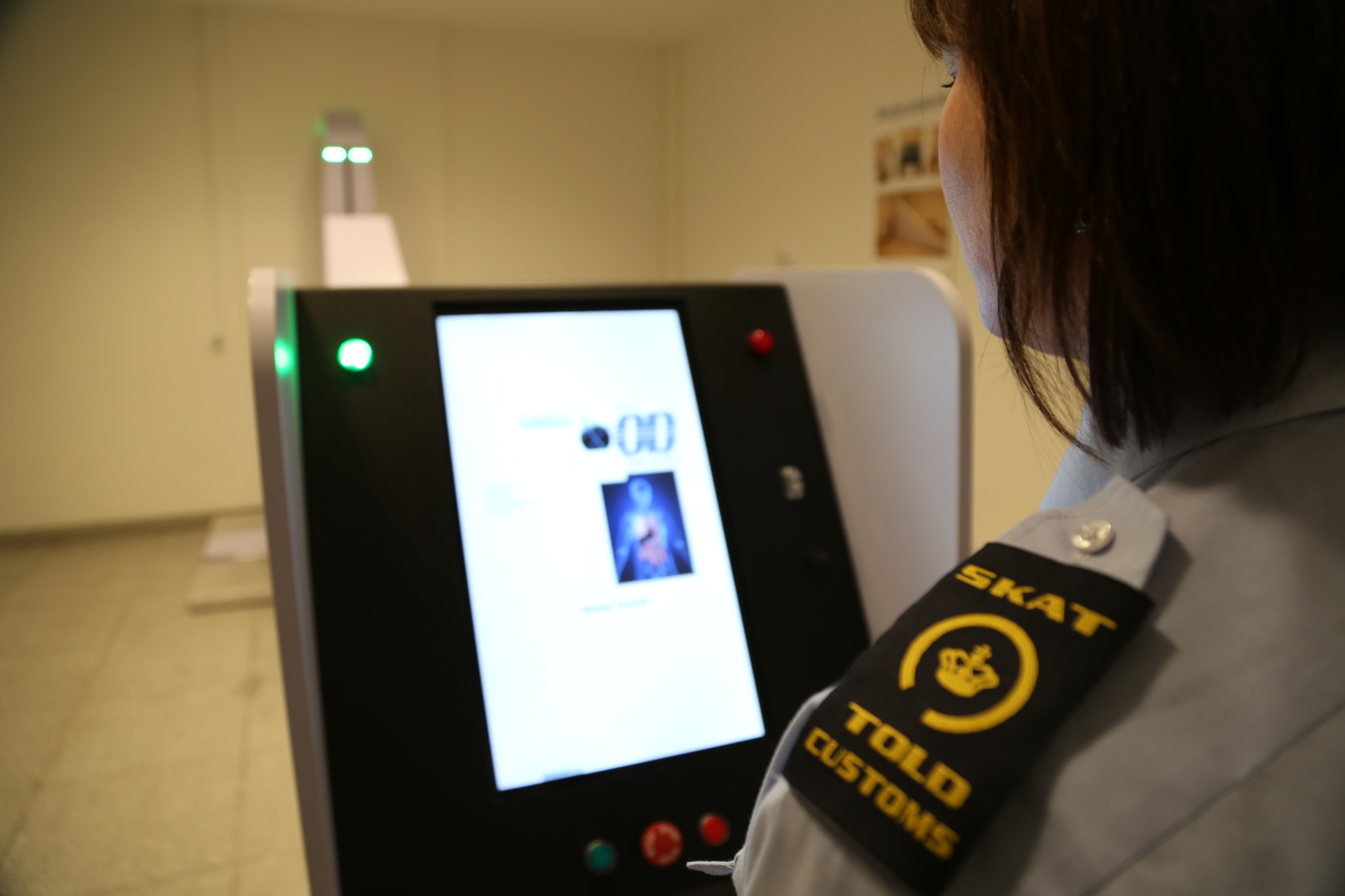 Billede 4: En medarbejder fra SKAT demonstrerer scanneren i Københavns lufthavn (uden røntgenstråler).