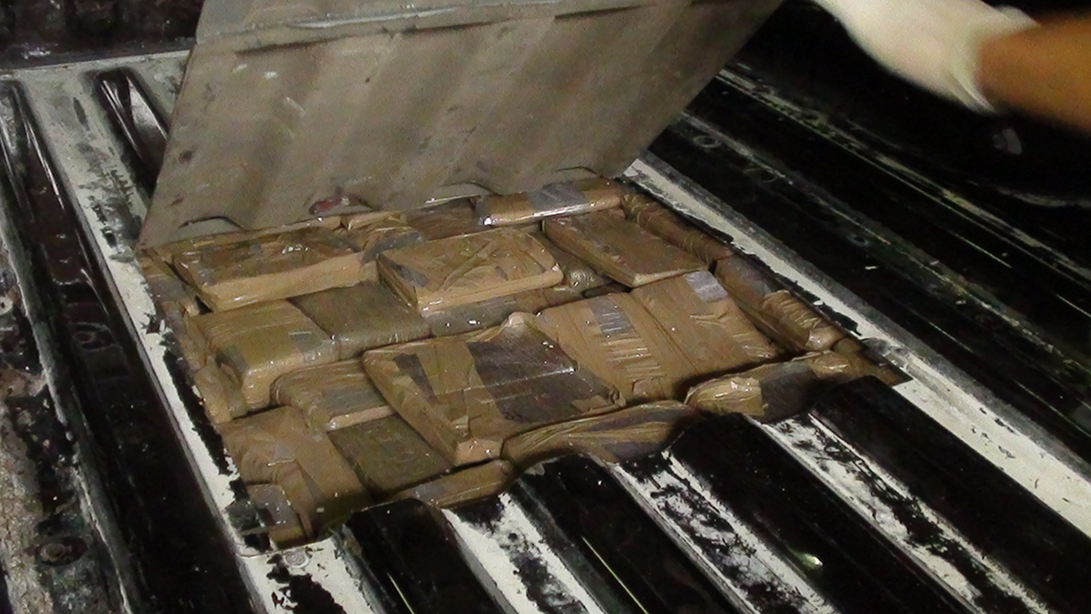 I bilens ekstra rum i bunden fandt SKAT 280 kg hash fordelt i mange pakker. Sagen blev herefter overgivet til politiets videre efterforskning.