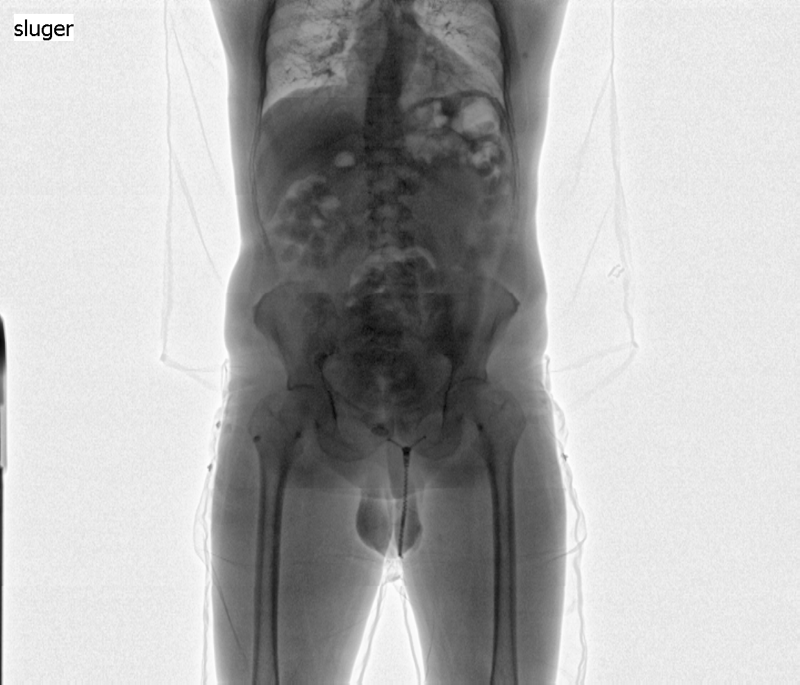 Scanningsbillede 2 - person med 75 kugler kokain med samlet vægt på ca. 1 kg.