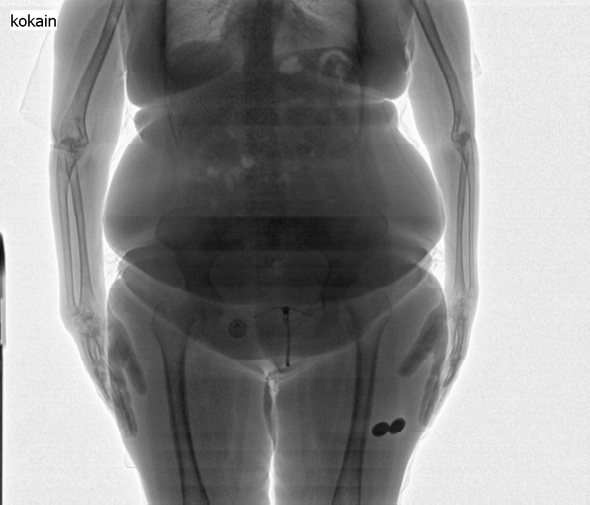Scanningsbillede 1 - person med 91 kugler kokain med samlet vægt på ca. 1 kg.